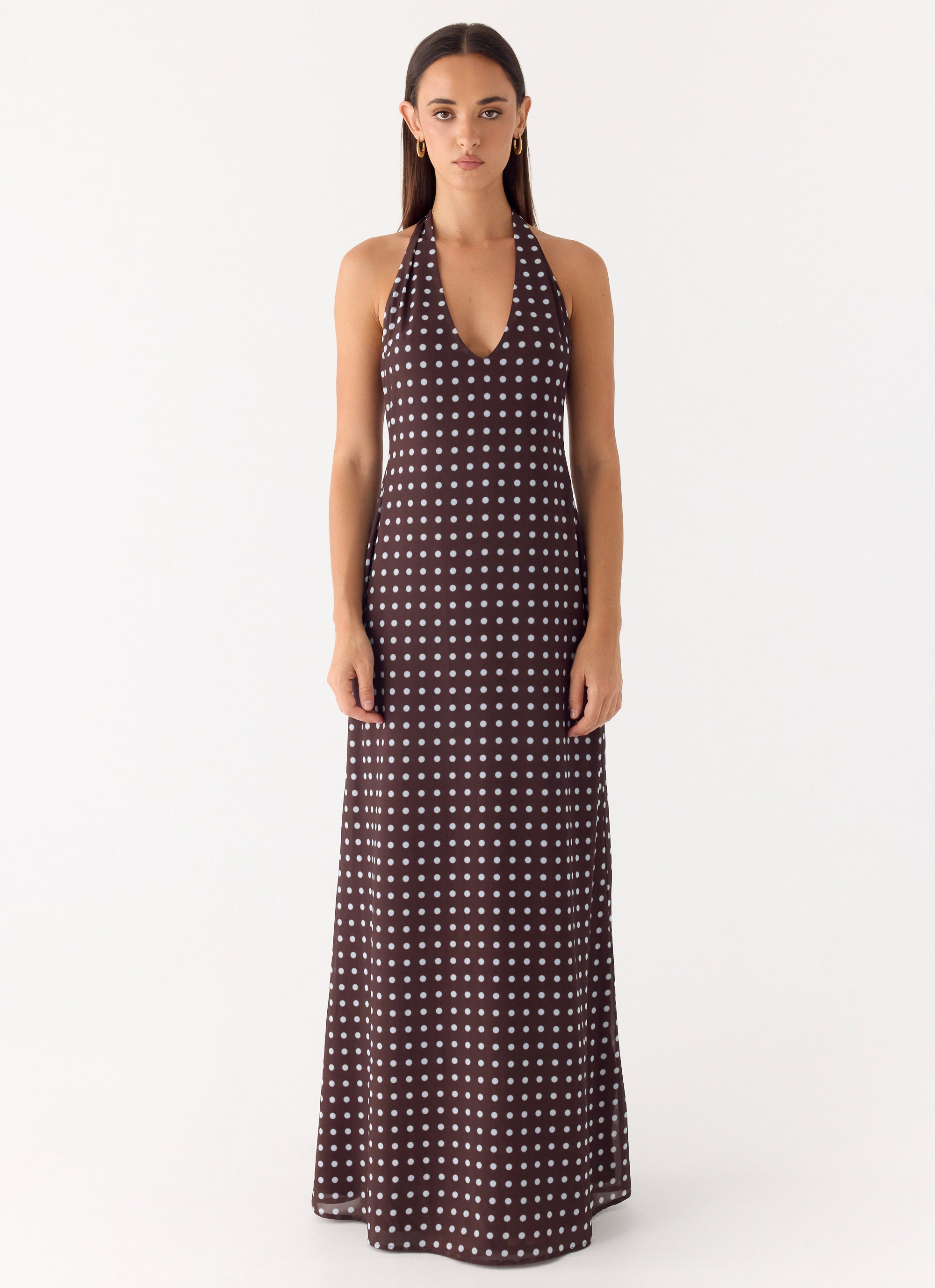 Peppermayo Exclusive - Float Away Maxi Dress - Chocolate Blue Dot