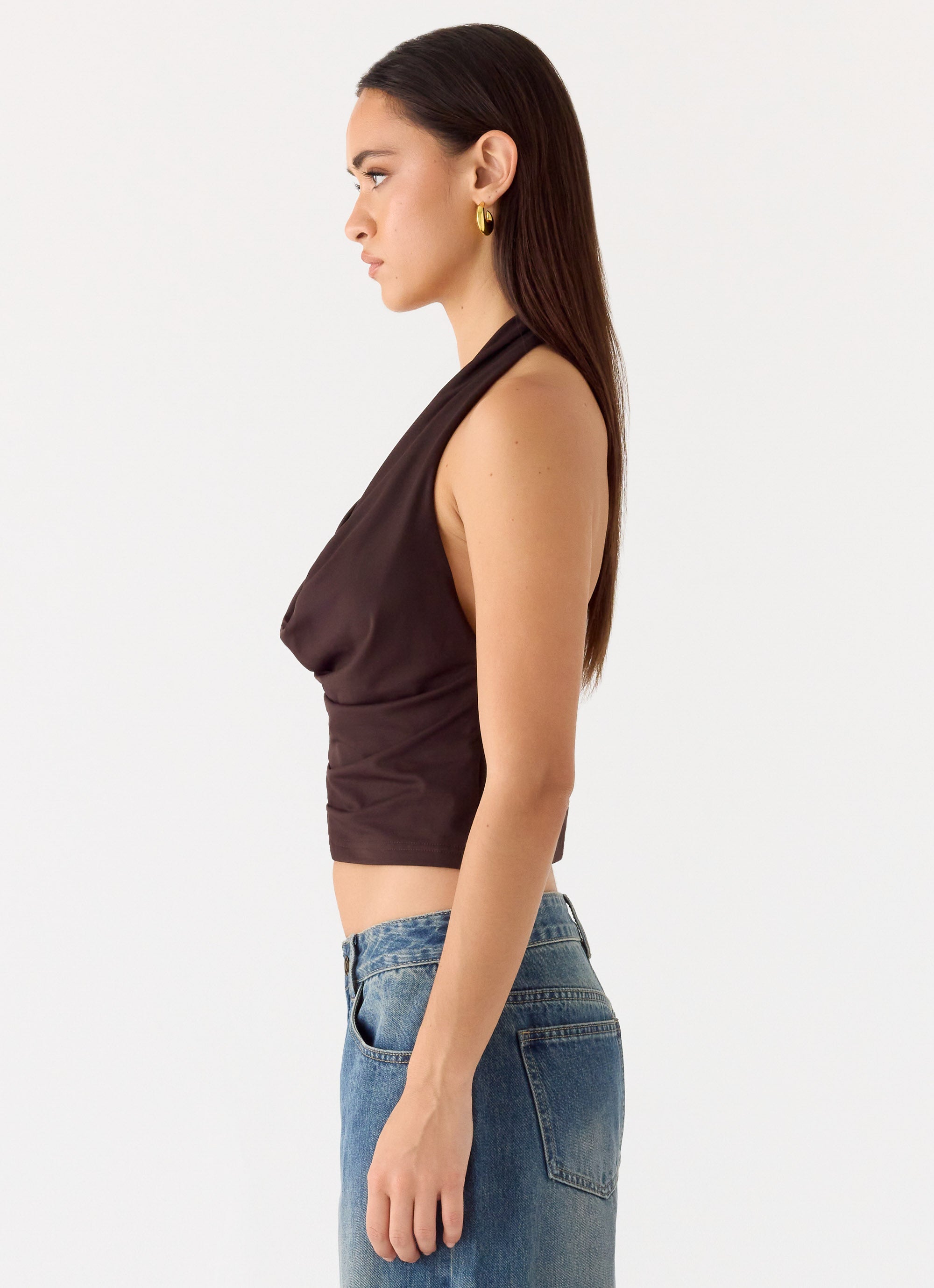 The Jonna Top is designed for effortless glamour from sunset to late-night moments. Featuring a low cowl neckline and a low back, it drapes elegantly over the body while a front gold embellishment adds a touch of luxe. Crafted in stretch jersey, it moves with ease for a flattering, comfortable fit.