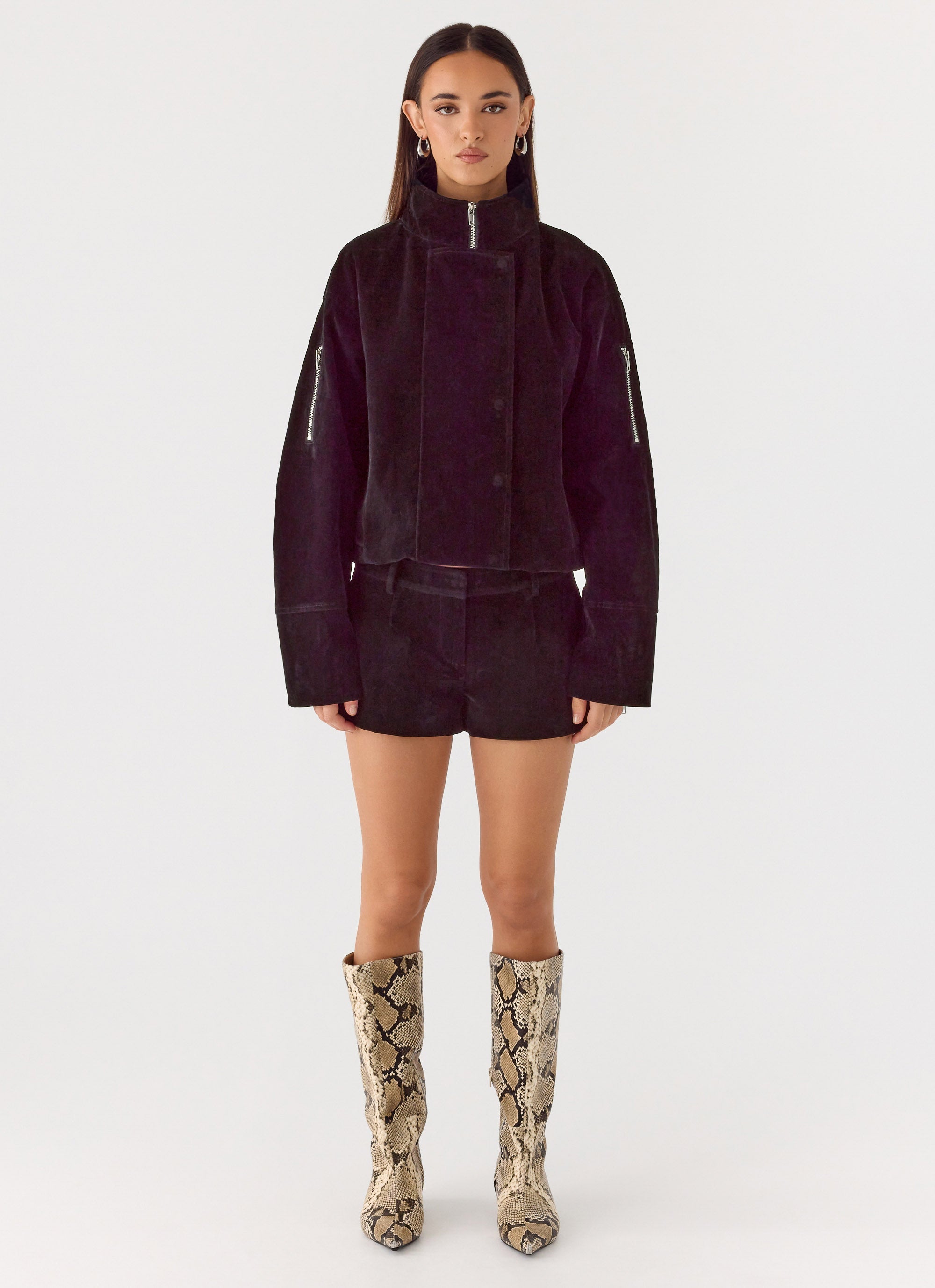 The Jeremy Faux Suede Shorts are made for elevated daytime looks with a hint of edge. Sitting low on the waist with a mini length silhouette, these shorts are crafted in soft faux suede for a luxe feel. Fully lined and finished with an invisible zipper and pockets, they’re perfect for styling from brunch to sunset drinks.