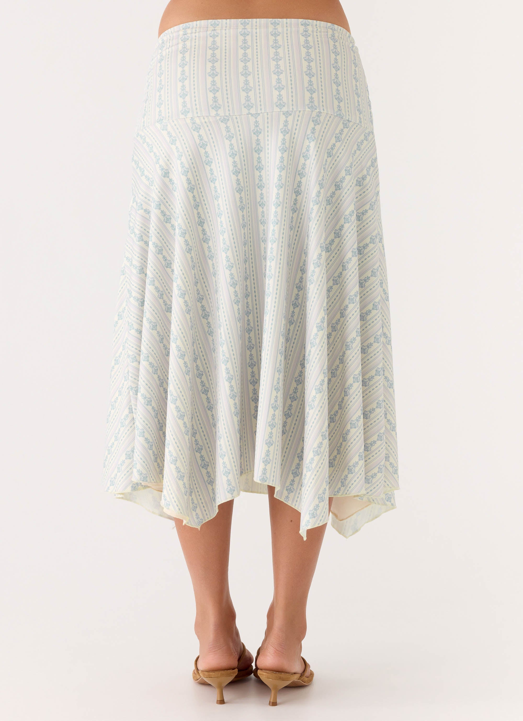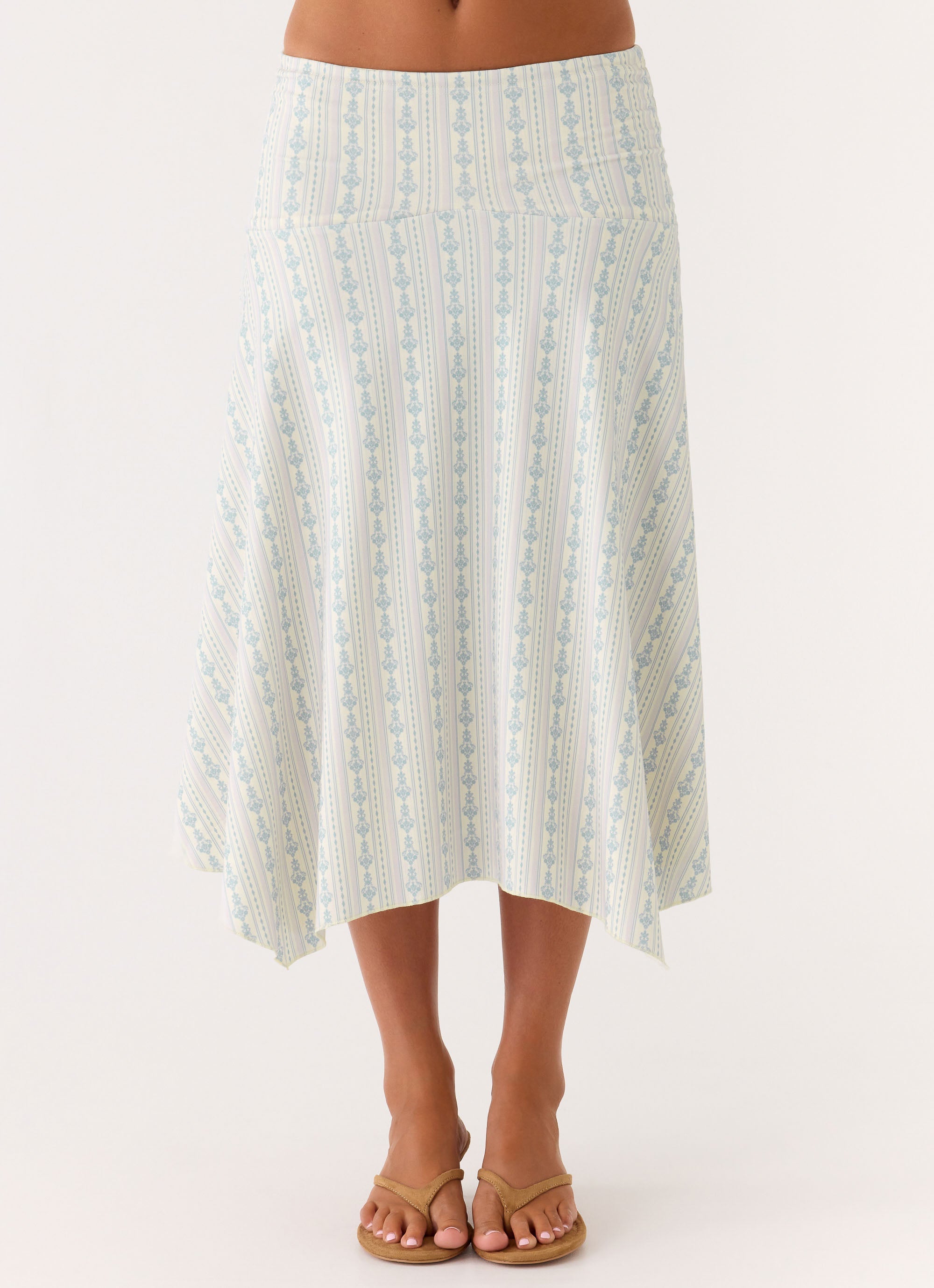 The Katta Midi Skirt is made for sun-drenched days that flow effortlessly into balmy evenings. Featuring a low-rise fit with an elasticated waistband, this midi-length silhouette is detailed with a drop waist seam and an asymmetric hemline for a flattering, editorial shape. Crafted in printed jersey and fully lined, it moves with relaxed, feminine ease.