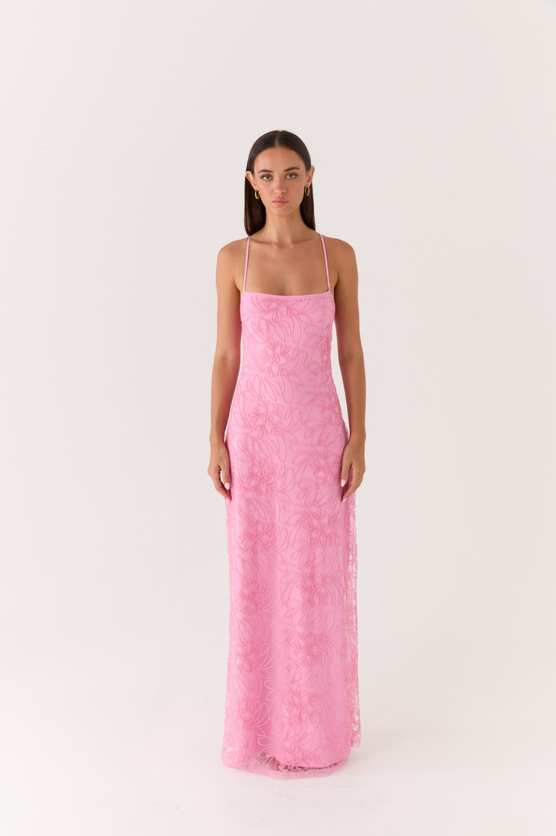 The Wonyoung Beaded Maxi Dress is designed to make a striking statement with its custom beaded fabrication. Featuring cross-back straps and a flowing maxi silhouette, this fully lined dress is crafted from premium stretch jersey with a heavyweight finish for structure and elegance.